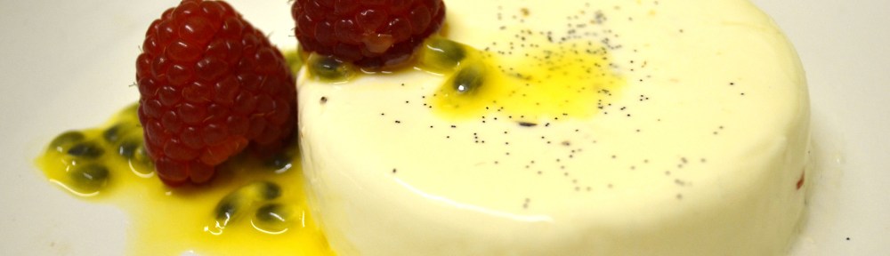 When ready to serve, loosen the panna cotta from the molds with a knife and, if necessary, by plunging the bottom of the molds into a hot water bath for 10 seconds or so. Turn the panna cotta onto dessert plates and garnish with passion fruit and raspberries (or whatever strikes your fancy). Serve.