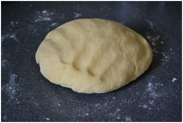 Mix together 150 grams of semolina and 300 grams of the Tipo 00 flour. You want to create a mound with a little well in the top, but I don’t think it’s necessary to start and finish on a board or your counter. I personally prefer to do the initial stage in a big mixing bowl.