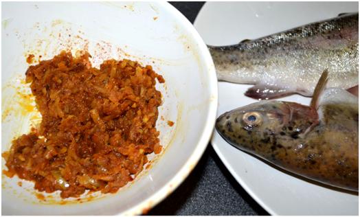 Wash and thoroughly dry the fish inside and out and cut 3-4 slits about ¼ inch deep along each side.