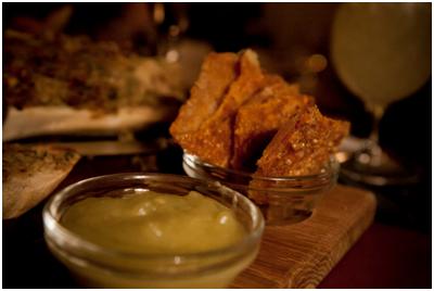 The bar menu reflects the understanding that all anyone really wants to eat when drinking strong cocktails is salt and fat. The baked bone marrow and toast (£4.95) was tasty, but I would have preferred it without the addition of tangy breadcrumbs. In my opinion, baked bone marrow is one of those perfect foods that needs no adornment, other than perhaps coarse salt. The Blythburgh pork crackling (£3.25), however, served warm with what tasted like gooseberry jelly, was AWESOME.