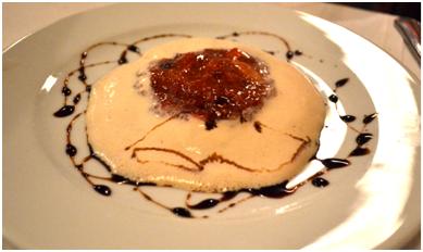 My father had chicken, which was served with in a sauce made with honey, and caramelized fennel, and my mother had dorade served with olive oil mashed potatoes. Again, both dishes were simple but nicely balanced. Note the presentation straight out of the 1960s. Adorable.