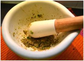 Toast the coriander seeds and brown mustard seeds until the mustard starts to pop and the coriander begins to brown and release an aroma, then remove from heat. In a mortar and pestle, pound the ginger and chile pepper into a paste. Add the toasted coriander and brown mustard seeds and the salt and continue to pound/mash until fully incorporated. Stir in the tamarind concentrate.