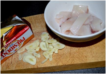 150-200 grams (about half a pound) of squid, cut into rings or sliced and scored on the diagonal