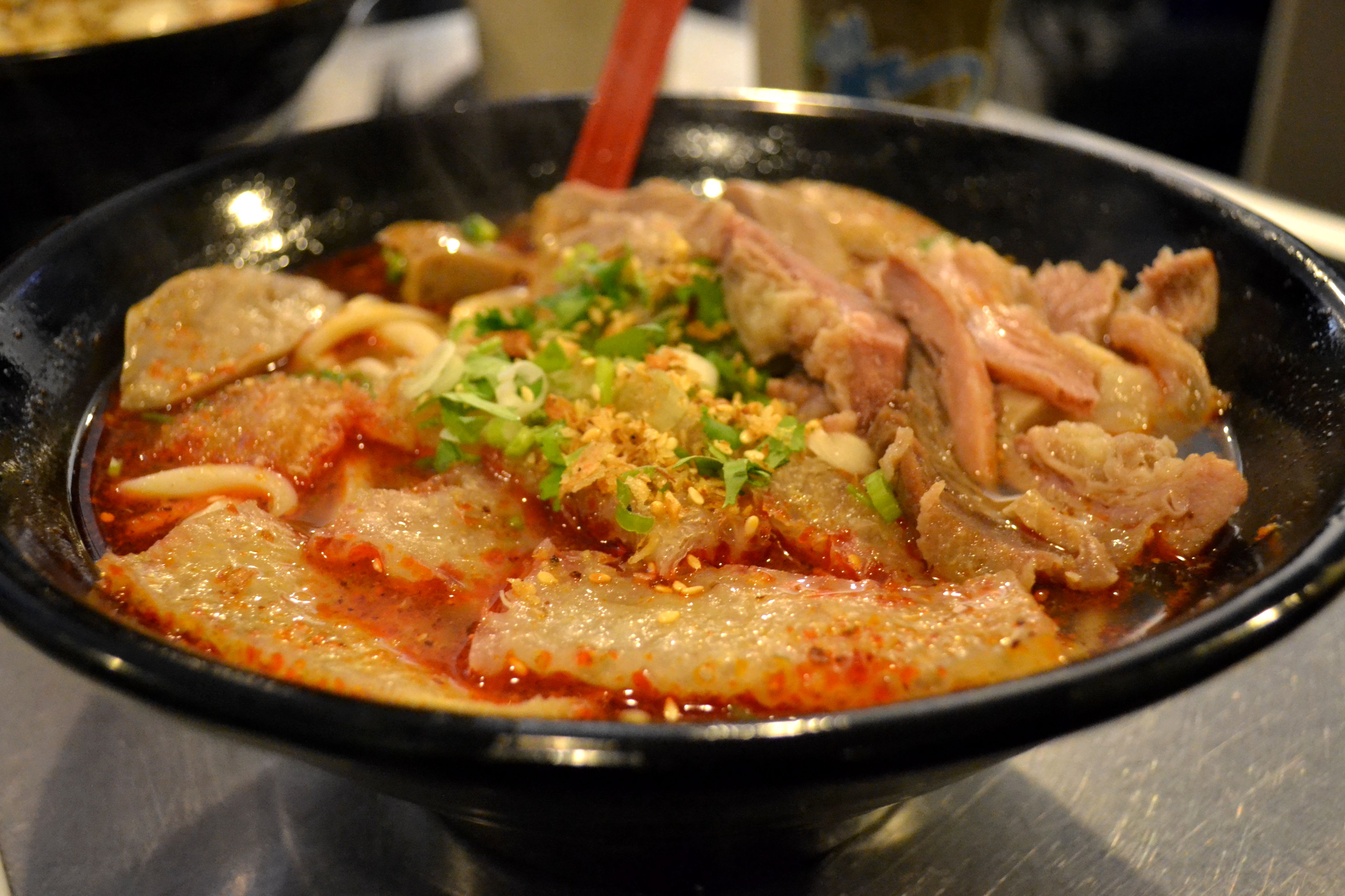 There is an honorable mention. Friend Z basically got the same soup I did, but instead of wonton he added meatball and pork skin ($1.50 for the additional selection). The meatball was flavorful and had that lovely rice-starchy bite to it that I love in Chinese cooking, and the pork skin, as far as I could tell, had been dried, fried, and then soaked in broth. Basically, a tasty meat explosion.