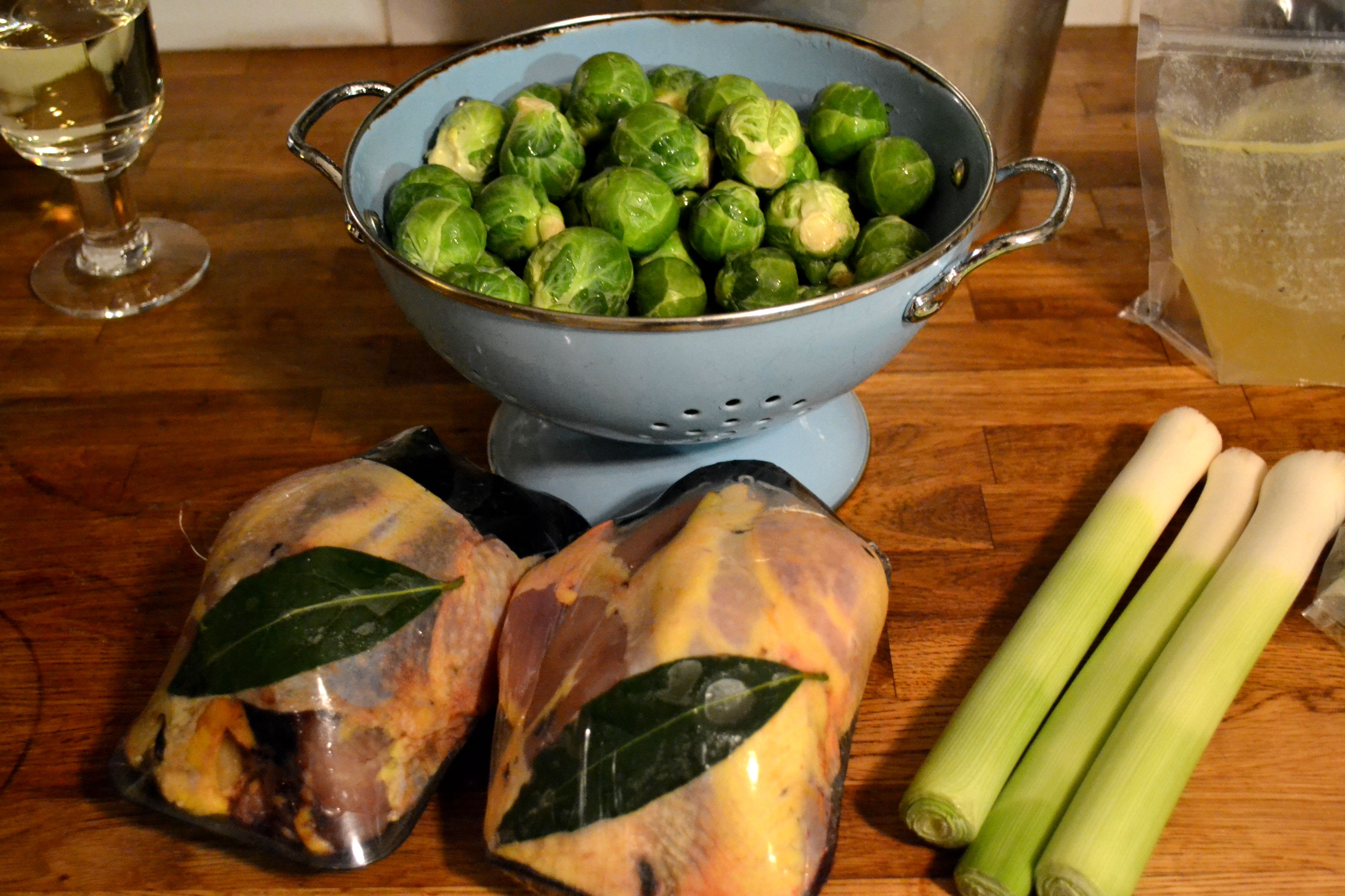 “Great!” said lovely Will. Two days later I was in Will and Jess’s kitchen, pheasants, leeks, and a sack of Brussels sprouts in hand.