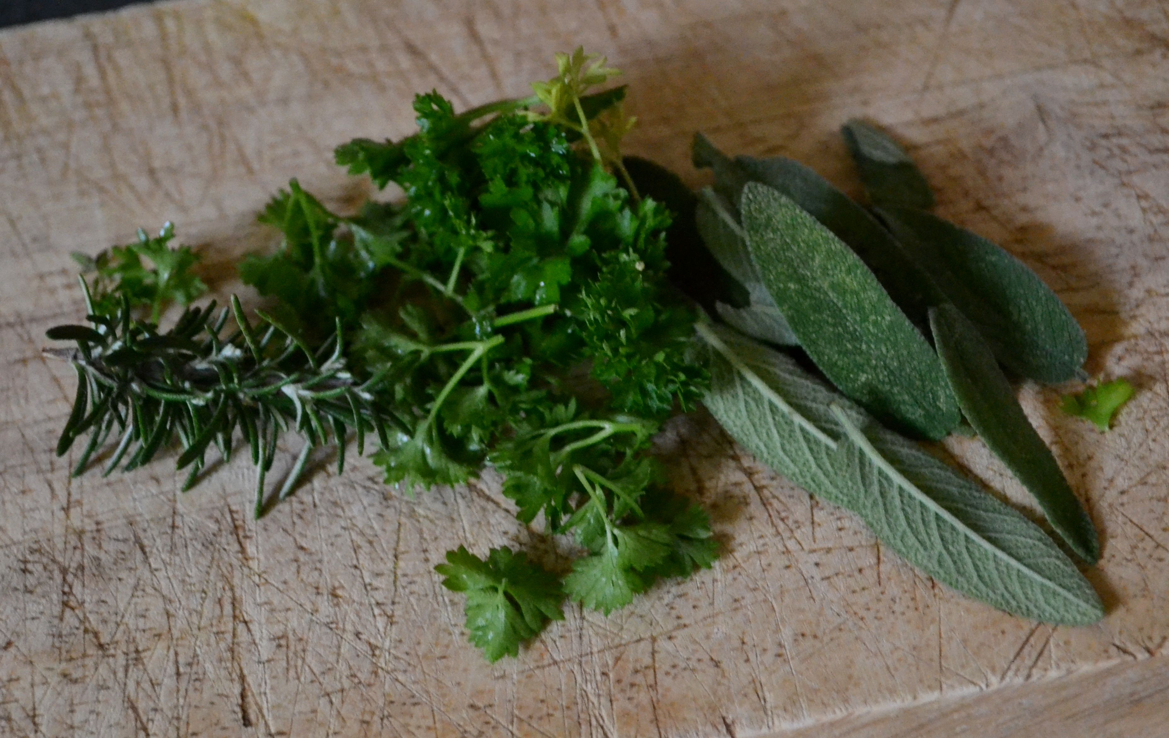 Wash and dry your duck legs well. Next, prepare your curing mixture. Chef Keller is quite fastidious about weighing the meat and apportioning the salt accordingly. My approach is a bit more freewheeling and it hasn’t affected the quality of my confit. You should assume you will need approximately one tablespoon of salt per duck leg. Combine the salt in a bowl with a generous handful of finely minced green herbs and (if you like) about half a teaspoon or so of fresh cracked pepper. It’s better to have too much than too little – you can always throw away what you don’t need.