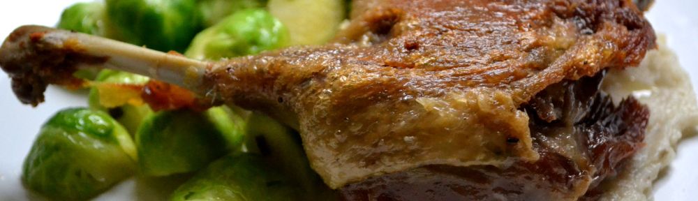 I especially adore confit de canard in winter (case in point: I have eaten duck confit twice in the past 36 hours), and I love its versatility. The duck leg pictured above is sitting on a bed of Jerusalem artichoke purée and served with Brussels sprouts cooked simply with butter, chives, and a little lemon. But in addition to classic bistro preparations, I add duck confit to salads, terrines, and hors d’oeuvres. To give credit where it’s due, I learned my confit technique from Thomas Keller’s Bouchon cookbook (one of my absolute faves) and I agree with his minimalism. Some people add cloves, shallots, and/or garlic to their curing mix. I just use fresh herbs and a little black pepper. That said, you should do what suits your fancy. It would be interesting (and doubtless tasty), for example, to confit duck legs that have been cured with juniper berries, or Szechuan peppercorns and star anise, or with caraway and toasted mustard seeds. If you use other seasonings, methods, or preparations, I would love to hear about them.