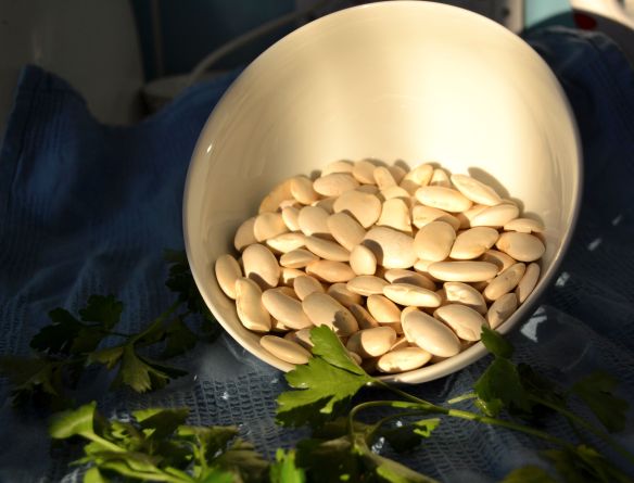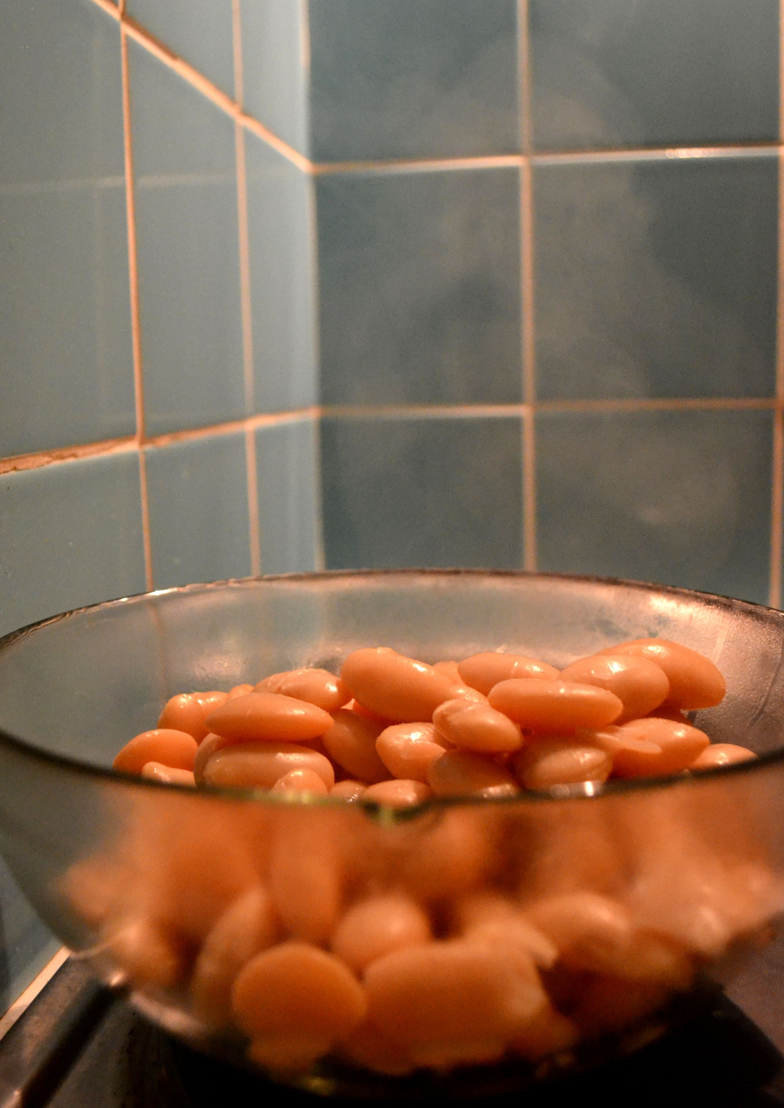 Now, three days ago I persuaded myself I was made of stern enough stuff to participate in a challenge called #10week. The rules? Live off £10 for a week (transport not included). Grim. I lasted all of about 12 hours before blowing through my entire tenner at the DIY store (it’s HARD to economize when you’ve just moved), but while the dream still lived undimmed, I rummaged through my cupboards and pulled out a bag of dried fava beans I’d bought for a Moroccan dinner last summer. Fava beans (broad beans if you’re British) are one of my favourite foods in the world, and in the springtime, when young fava beans start appearing in markets in their furry green pods, I buy them by the sackful and add them to everything. Mature dried fava beans are quite a different beastie; they’re big and starchy and require a fair amount of advance planning and cooking.