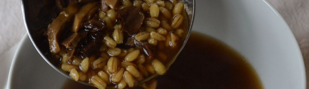 A LOT of Polish food is comfort food to me, since it’s the food I grew up eating. (My mother is Polish.) And I have to admit that I have been feeling pretty nostalgic lately. This soup was one of my favourite things to eat as a little girl, and it reminds me of chilly New York winters and good kitchen smells and (of course) of my mother. Like a lot of peasant food it is strong simple stuff. The nice thing about this soup is it’s fairly adaptable. You can add sliced button mushrooms, or vegetables like carrots or celery, or even potatoes, and you can use a vegetable or chicken broth instead of beef broth, and you’d still be making “krupnik.” I like to keep this soup fairly minimalist and (what I think of as) classic: I use a rich beefy broth, plenty of dried porcinis, and pearl barley. I actually don’t know if this is exactly how my mother makes it, but it tastes right to me.
