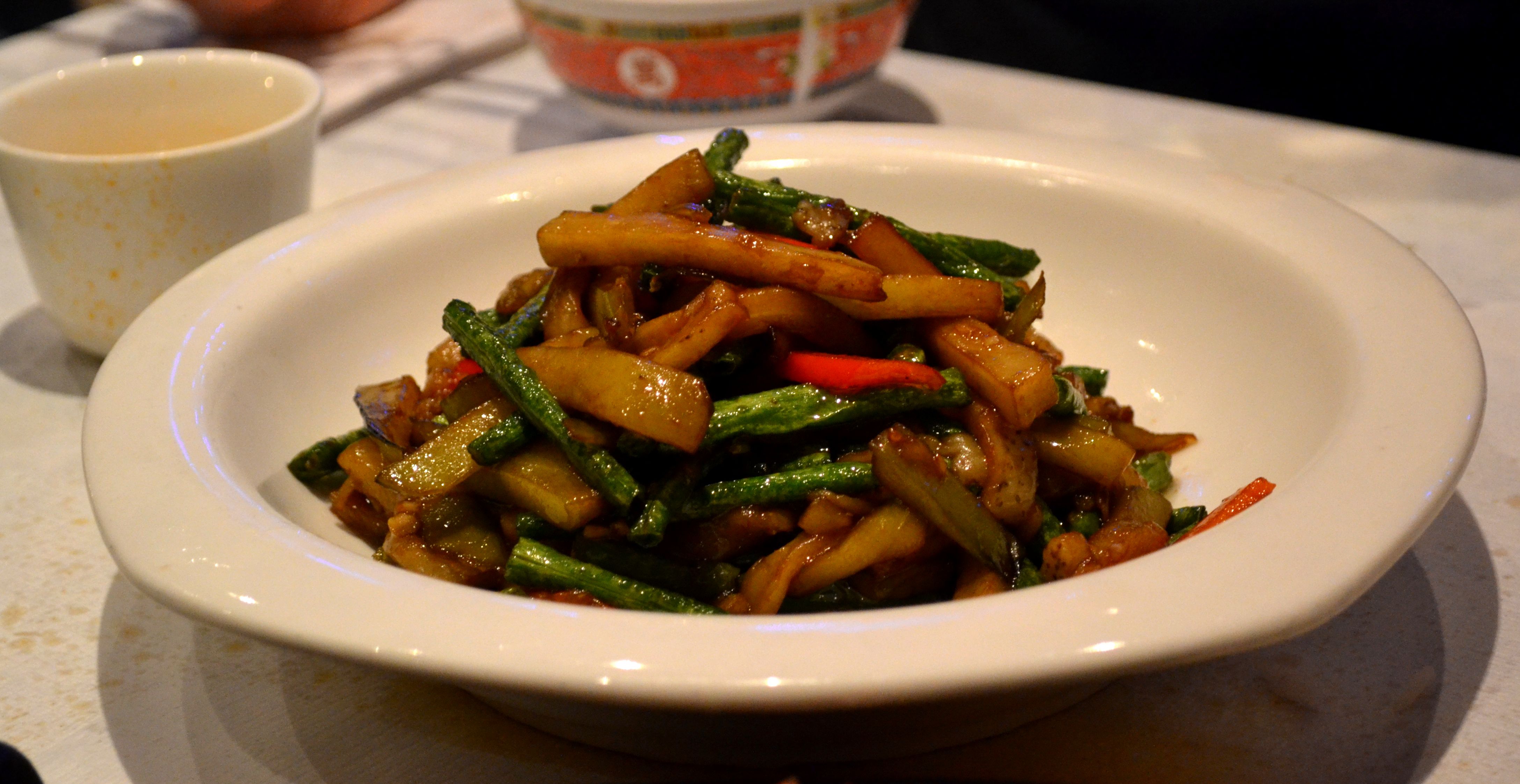 My current yardstick is Chilli Cool in Bloomsbury which does ace crispy fired intestines, a lovley set of dry fried green beans with minced pork and an unbearably morish and richly delicious fish fragrant aubergine. Heaven on a plate. Especially with all that wonderful spicy, hot, numbing seasoning.
