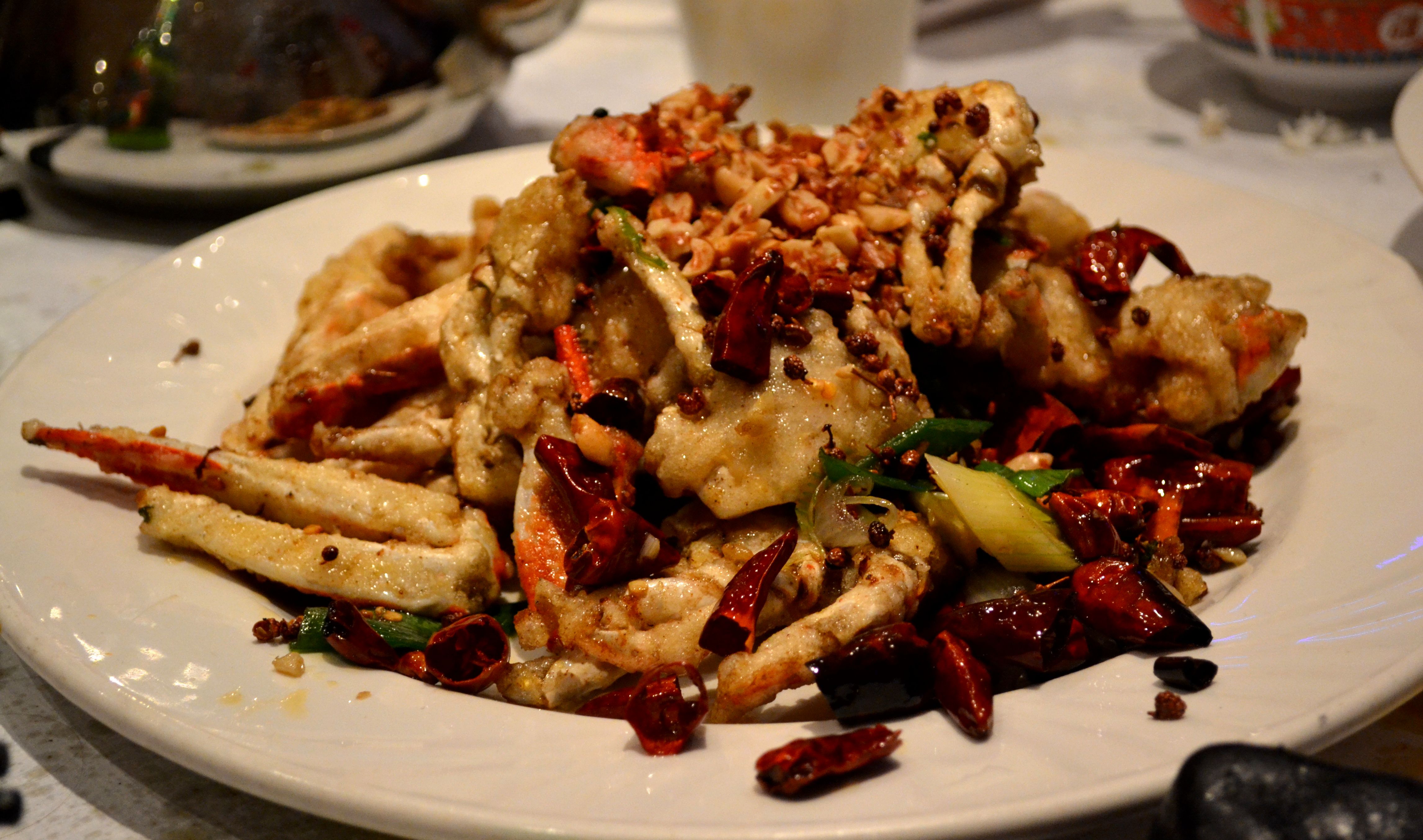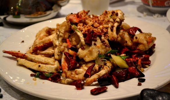 But what about the CRAB, you say. Well, I’m saving the best for last, of course. I’m choosy about my Szechuan crab, having had the best crab I expect I will ever eat outside of China at Szechuan Chef in Bellevue, near Seattle. This crab gave Szechuan Chef a run for its money. It lacked Szechuan Chef’s achingly perfect balance of sweet, spicy, and salty, but I nevertheless found myself grabbing chunks of lightly battered, salty, tangy claws and sucking and chewing on them in an agony of bliss.