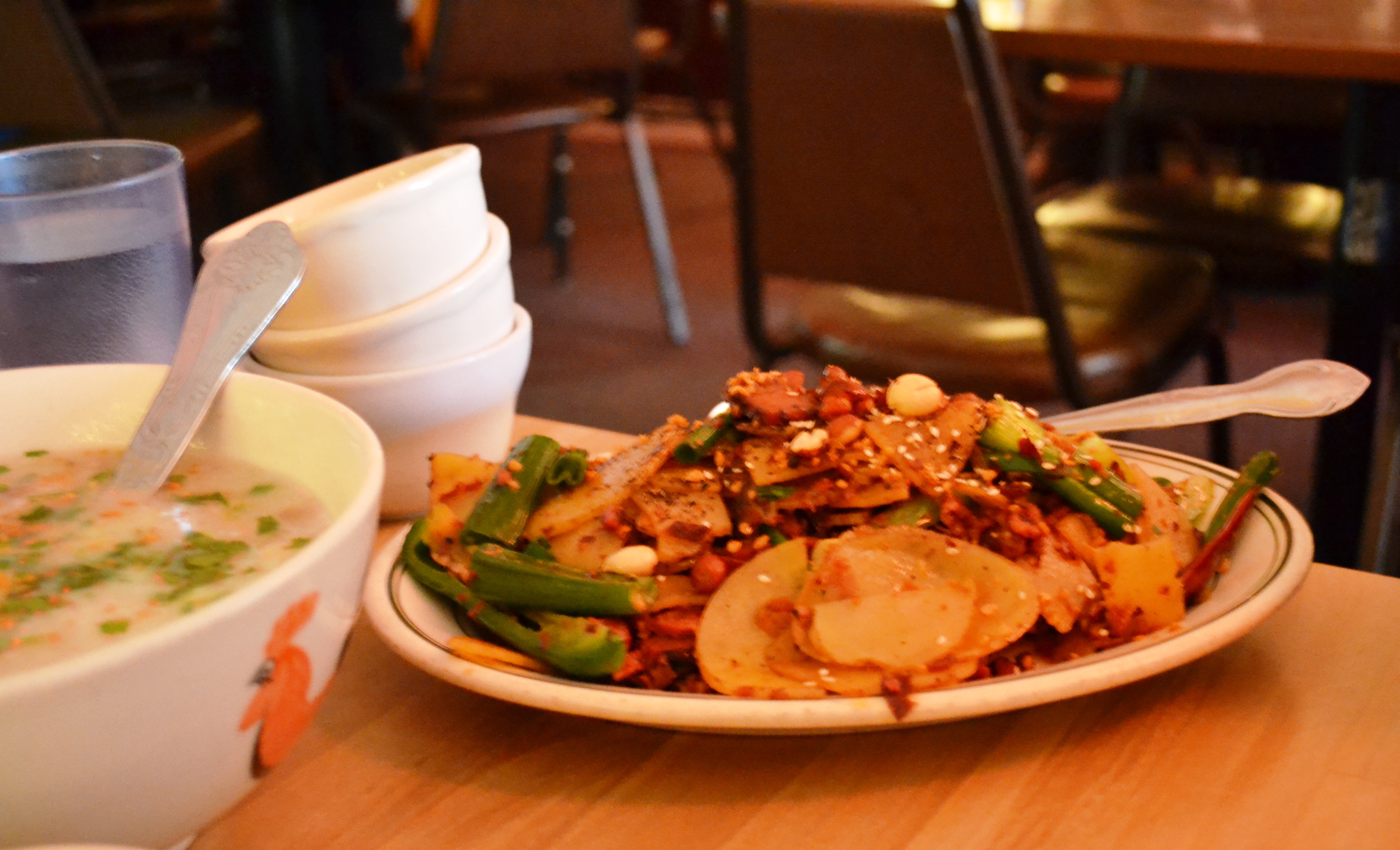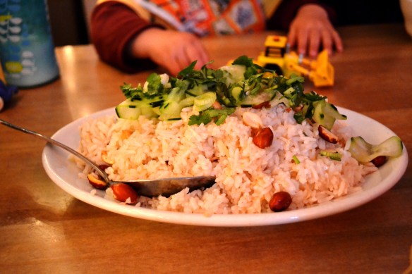 Thank you Daisy! The menu is actually very well-balanced between hot and spicy and not at all spicy. C and A brought their two-year-old which meant that we needed to get a few things that weren’t spicy. The congee was incredible and not spicy, the Hainanese chicken rice was lovely, and we also ordered a noodle dish (not mentioned in this review, since I can’t figure out which item on the menu it was) that was delicious and not at all spicy. (Ezra, the two-year-old, preferred this dish to the chicken, which is what we got for him.)