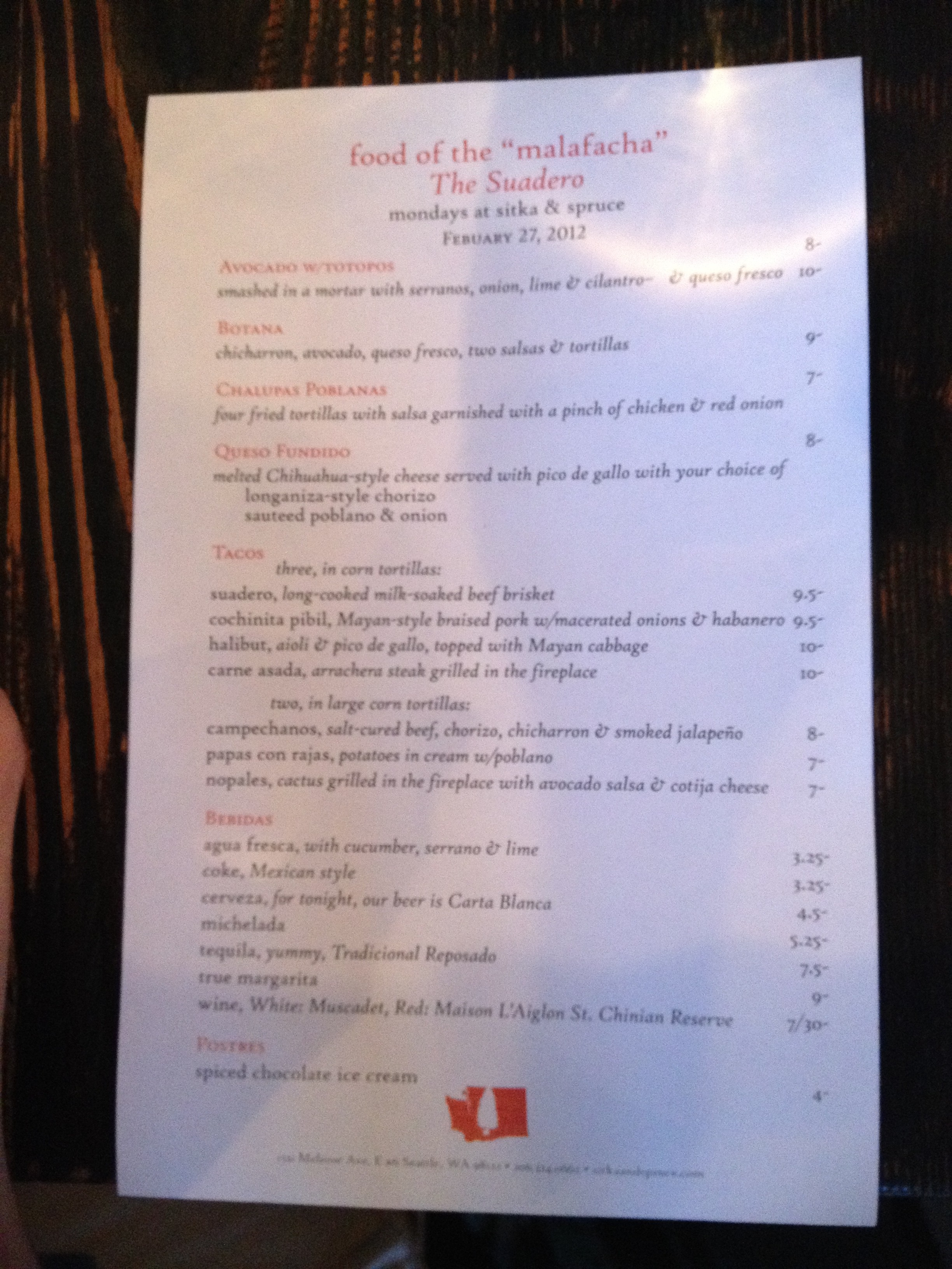 I’ve heard good things about Sitka and Spruce, but I’ve never been. I’ve never heard of their Taco Mondays. I’ll have to add this to my list for my visit to Seattle this summer. Here in Southern California, we have so many “hole-in-the-wall” restaurants with chefs that are cooking authentic dishes from their homeland. That’s what I love about the LA food scene.