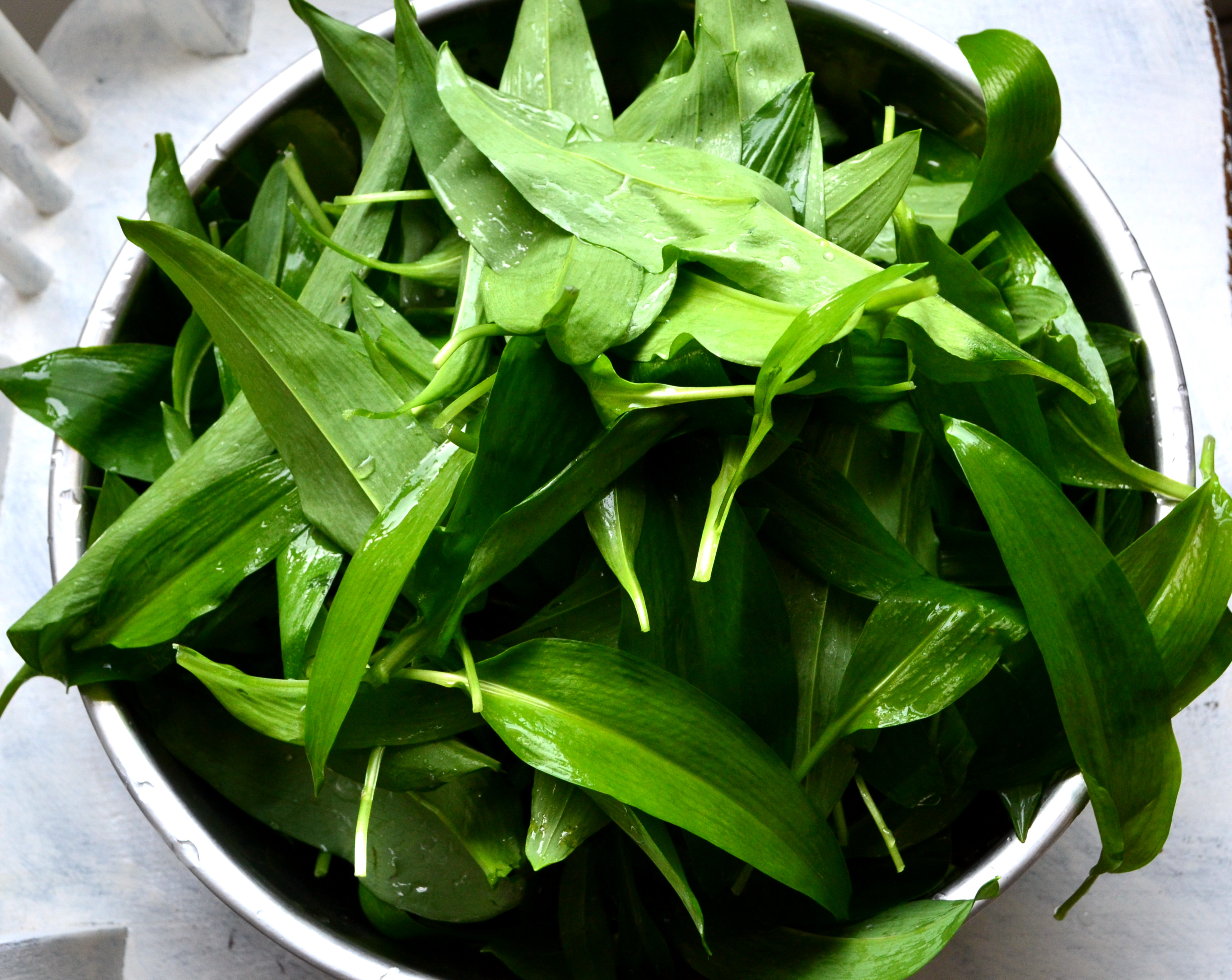 4-5 tablespoons of wild garlic leaves and shoots, washed and pulverized in a food processor or finely minced