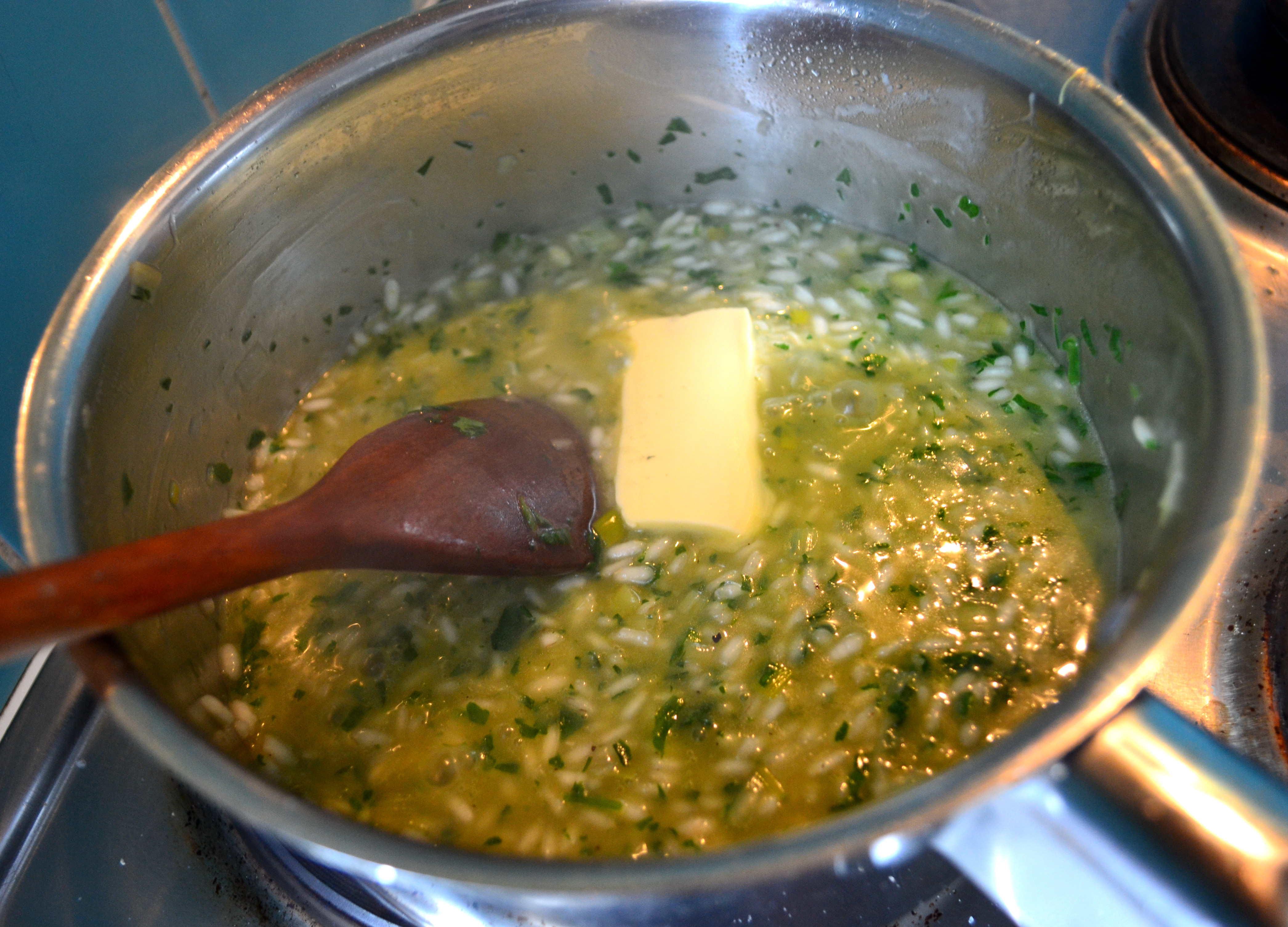 After your risotto is cooked to your liking, stir in the last dollop of butter to give it a little extra gloss and set aside.