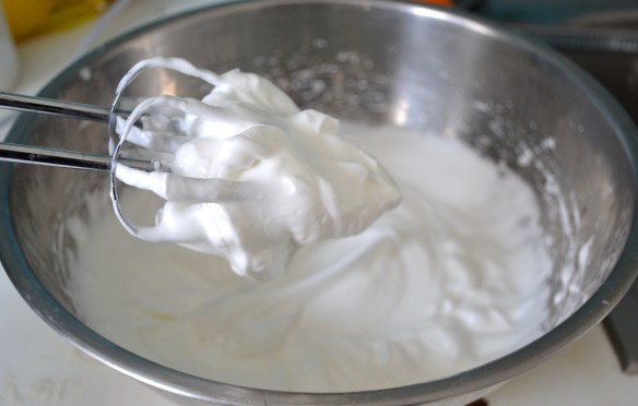 Stir the dry ingredients into the egg yolk mixture, fold in about a third of the meringue to lighten it, and then combine with the remaining meringue, and yogurt, folding with a rubber spatula until just incorporated. Pour into your prepared cake pan and bake in the center of your oven for 35-40 minutes, or until the center of the cake feels light and springy to the touch. Cool on a rack in the pan for about 30 minutes. You can then loosen the edges of the cake and invert onto the rack to cool completely.
