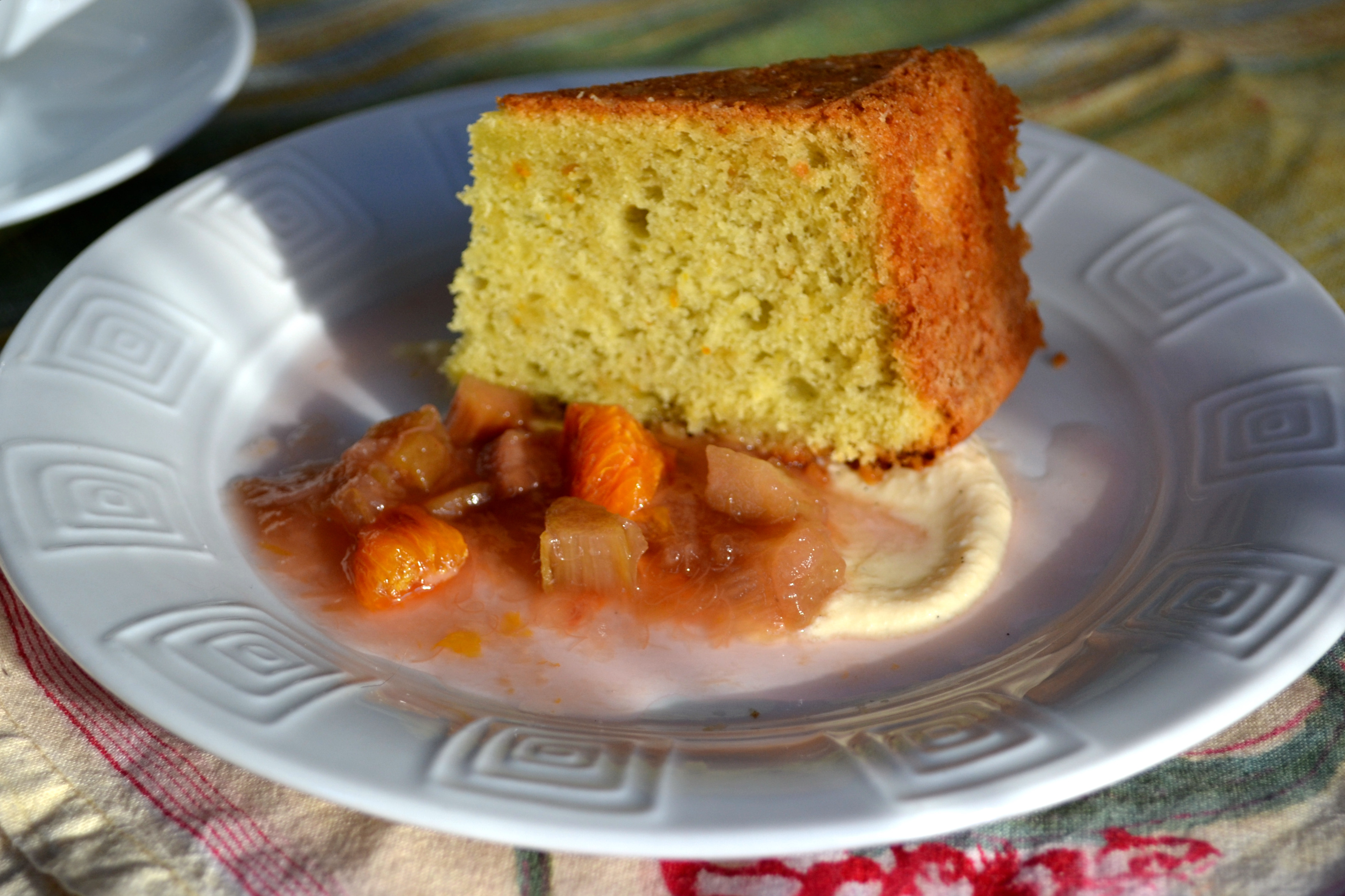 Blood Orange Olive Oil Cake with Rhubarb-Blood Orange Compote and Creme Anglaise