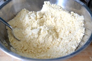 Sift together the flour, baking powder, salt and lemon zest. Using your fingers, a fork, or a food processor, mix in the butter and 2/3 cup sugar until the mixture resembles fine crumbs.