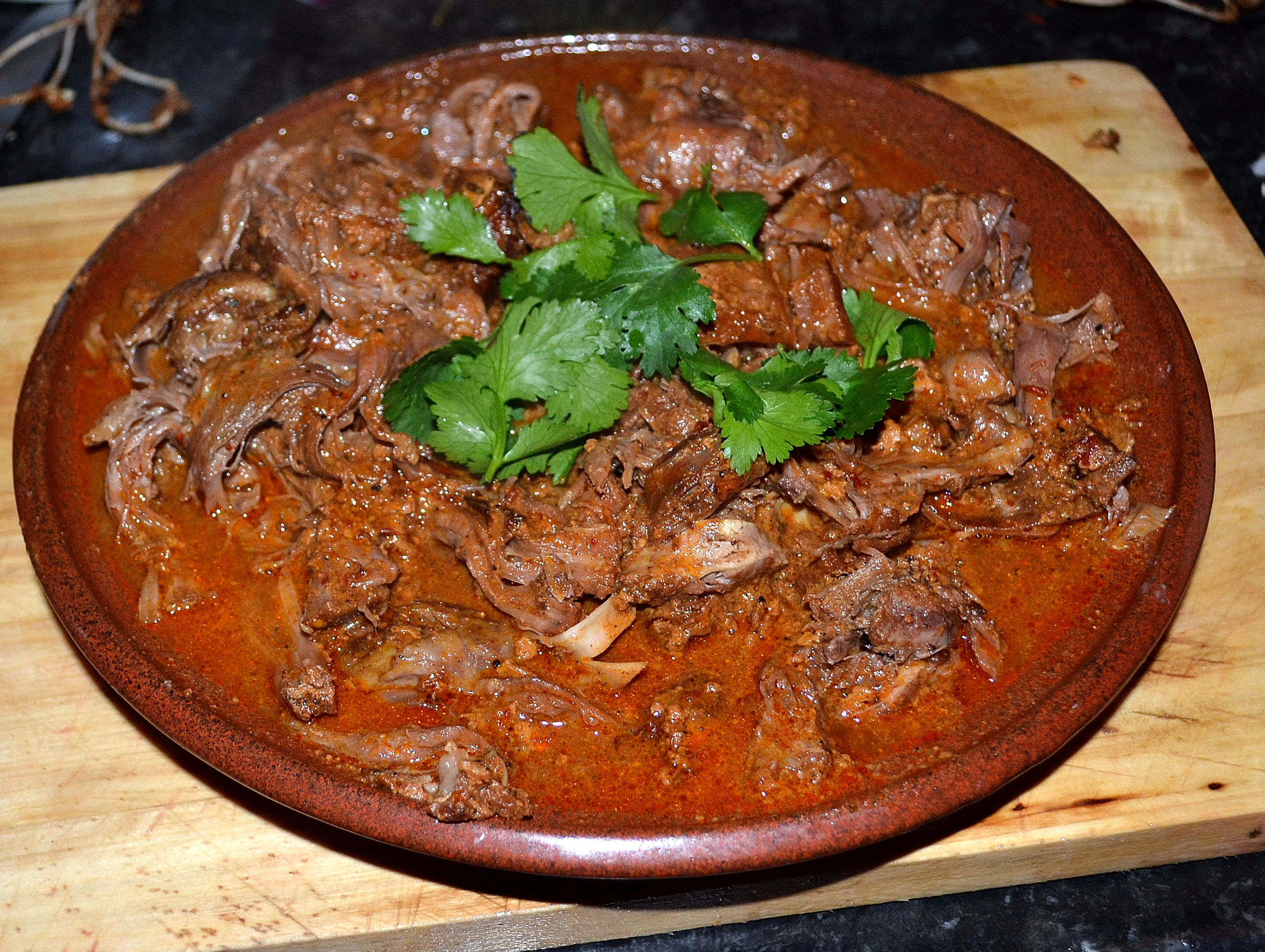 Traditionally, this dish should be served with a red onion salsa and tortillas. (I did make a red onion salsa, and you can too, by combining chopped red onions, tomatoes, chilli pepper, garlic, lime juice, and coriander (cilantro) leaves.) But you can also serve it with rice, or cornbread, or just bread, so long as you have something to sop up the marvellous sauce. Although I made this dish with veal in a faithful effort to recreate the original, you can use beef brisket, short rib, or stewing meat, or pork shoulder, or any other cut of meat you think would benefit from long, slow, cooking. Using a different cut of meat may affect the braising time, but otherwise, this dish is universal. Seriously: one of the best things I have ever cooked.