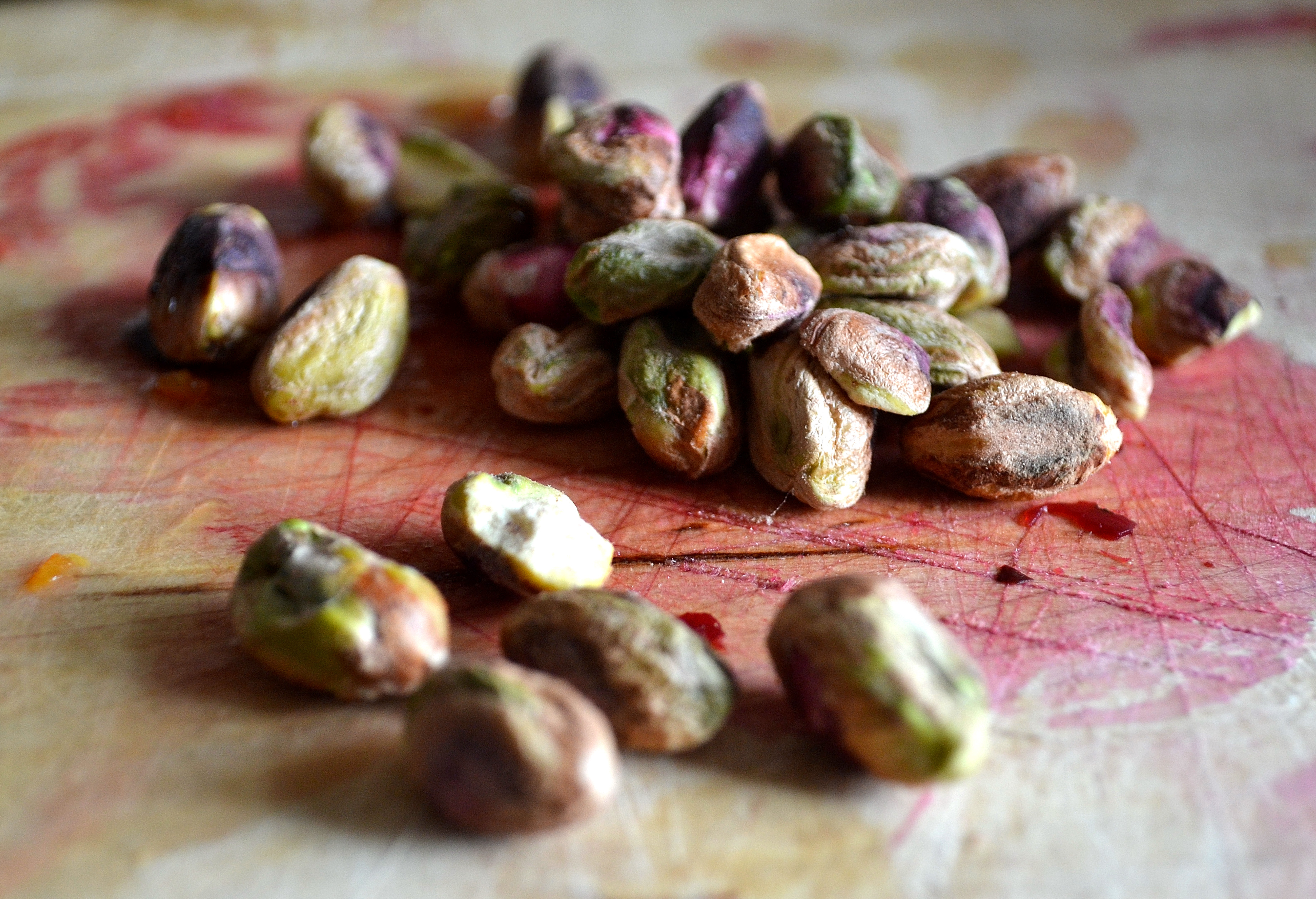 2 tablespoons fresh hulled unsalted pistachios, roughly chopped, plus one to two additional teaspoons chopped and reserved.