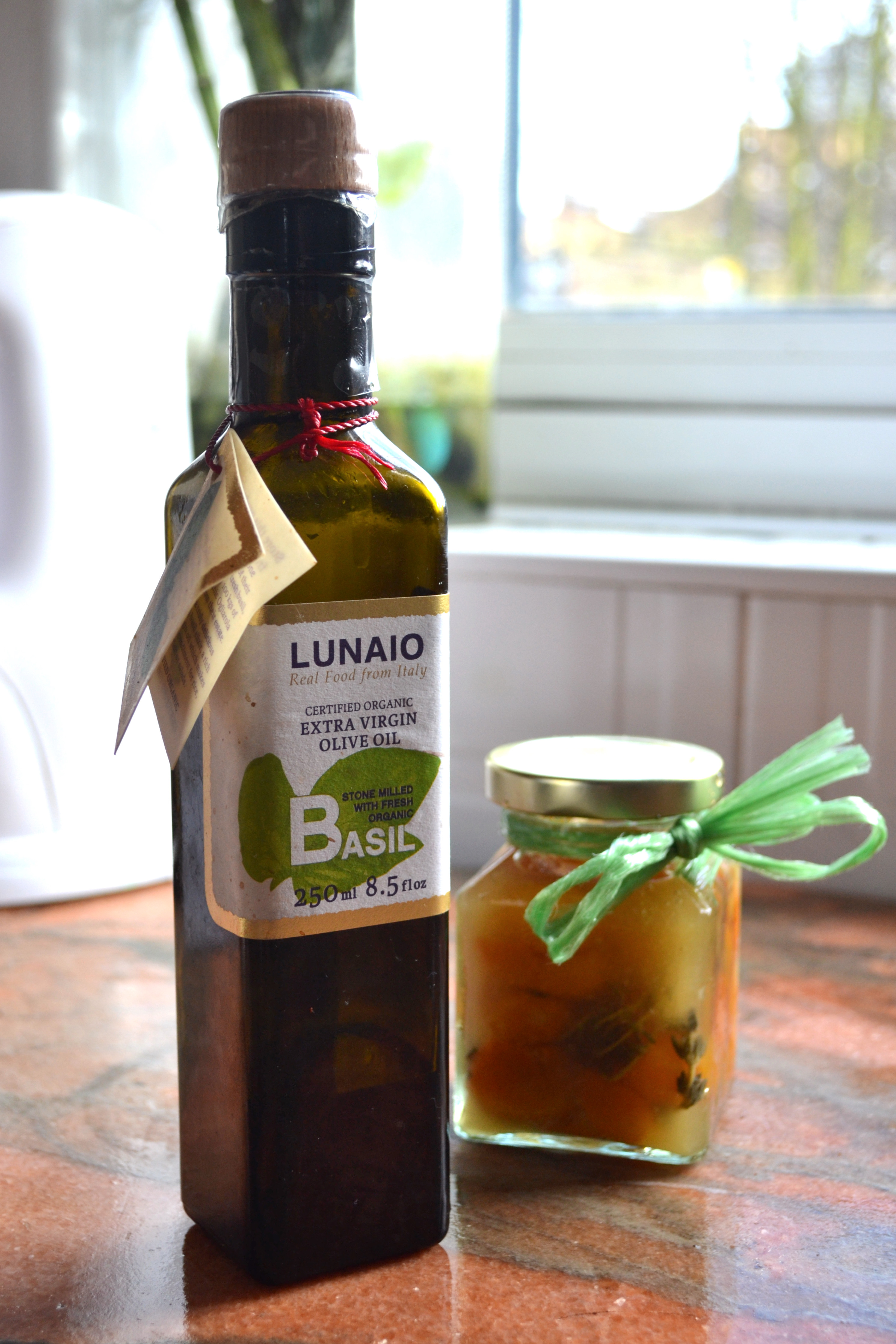 1 tablespoon basil olive oil (or 2 tablespoons extra virgin olive oil, and a handful of roughly torn basil leaves)