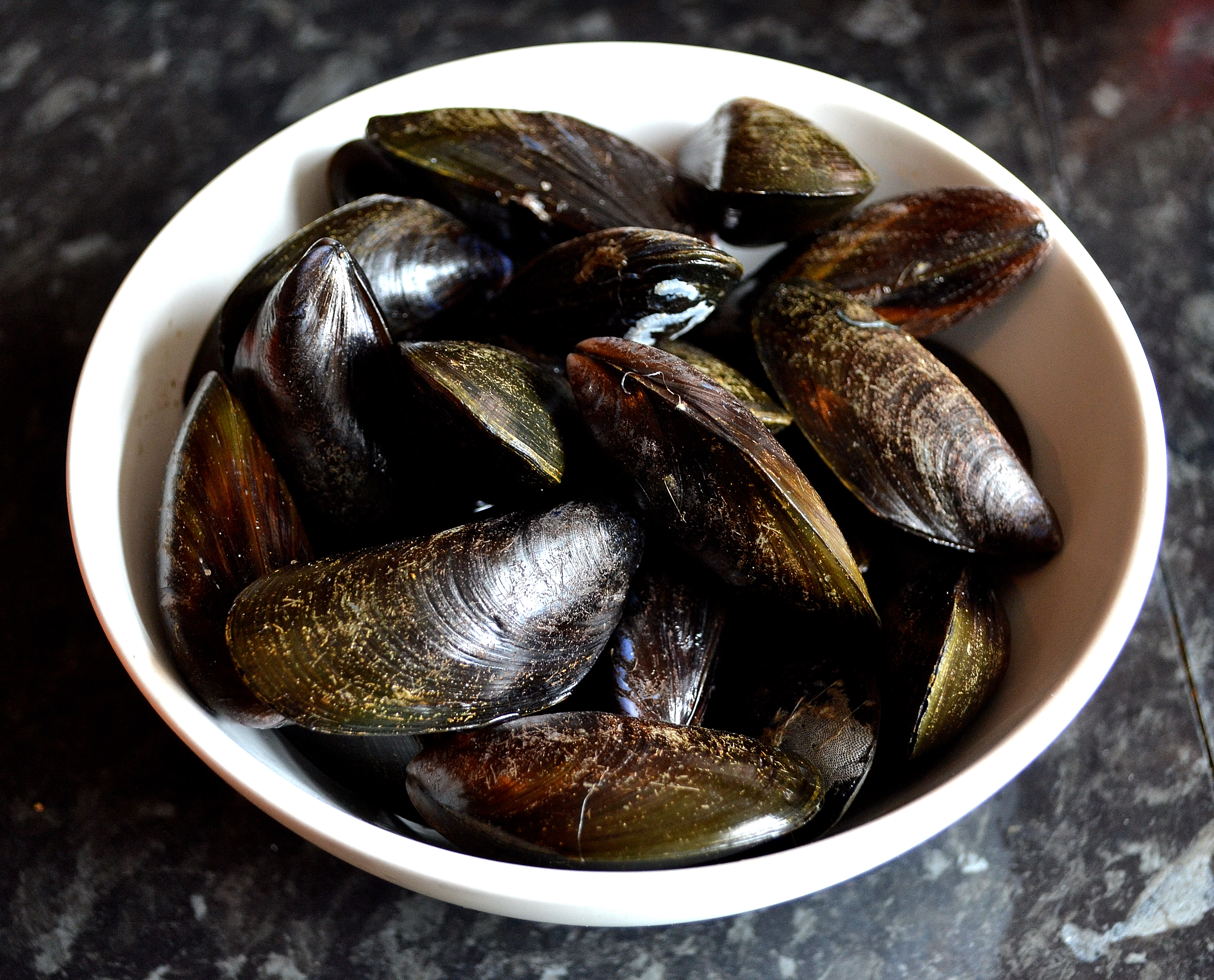 1 kg (2.2 pounds) mussels, scrubbed clean and debearded (you debeard mussels by pulling any seaweedy bits firmly away from the shell, ideally under cold running water)