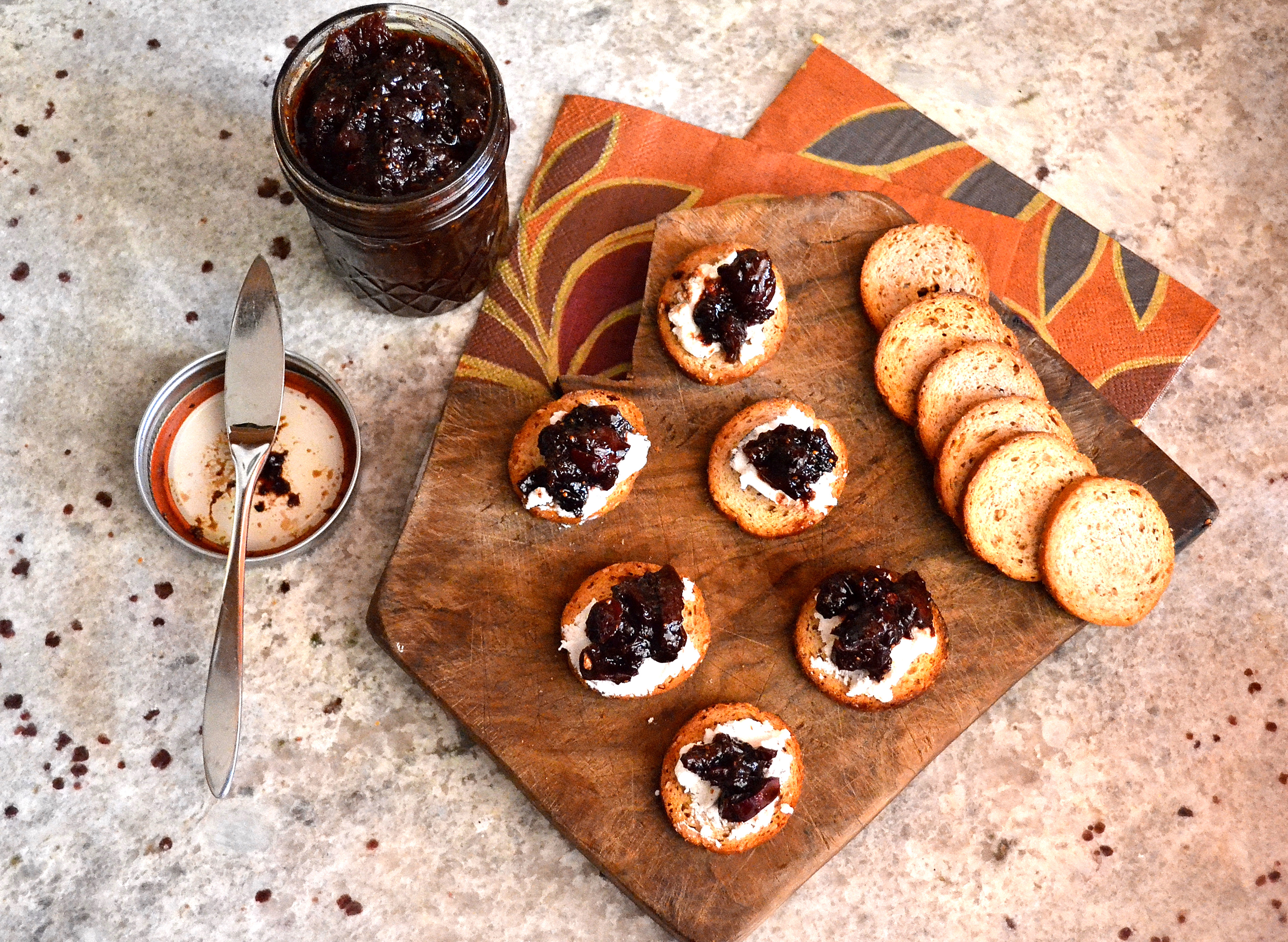 Even though it is fig season, I used dried figs in this recipe for two reasons. First, they are much less expensive than fresh figs. Second, I really like the meaty chewy exoticism of dried figs. Pair this chutney with cheeses (really, I can’t think of a single cheese that would not be complemented by this chutney – salty sheep cheeses, aged cheddars, tangy goats, and gooey raw milk cheeses all would be delighted to share space with it on a cracker), cured meats, or as a condiment with roast pork. Or make loads, jar it, and give it away as gifts.