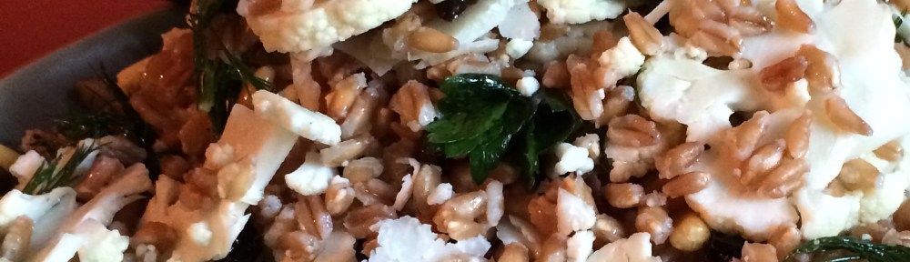 To finish: toss the farro, cauliflower and dressing, salted herbs, nuts, and berries, being careful not to break the delicate cauliflower florets. (I use my hands.) Taste and adjust seasonings as desired. If using, garnish with shaved pecorino. Serve at room temperature.