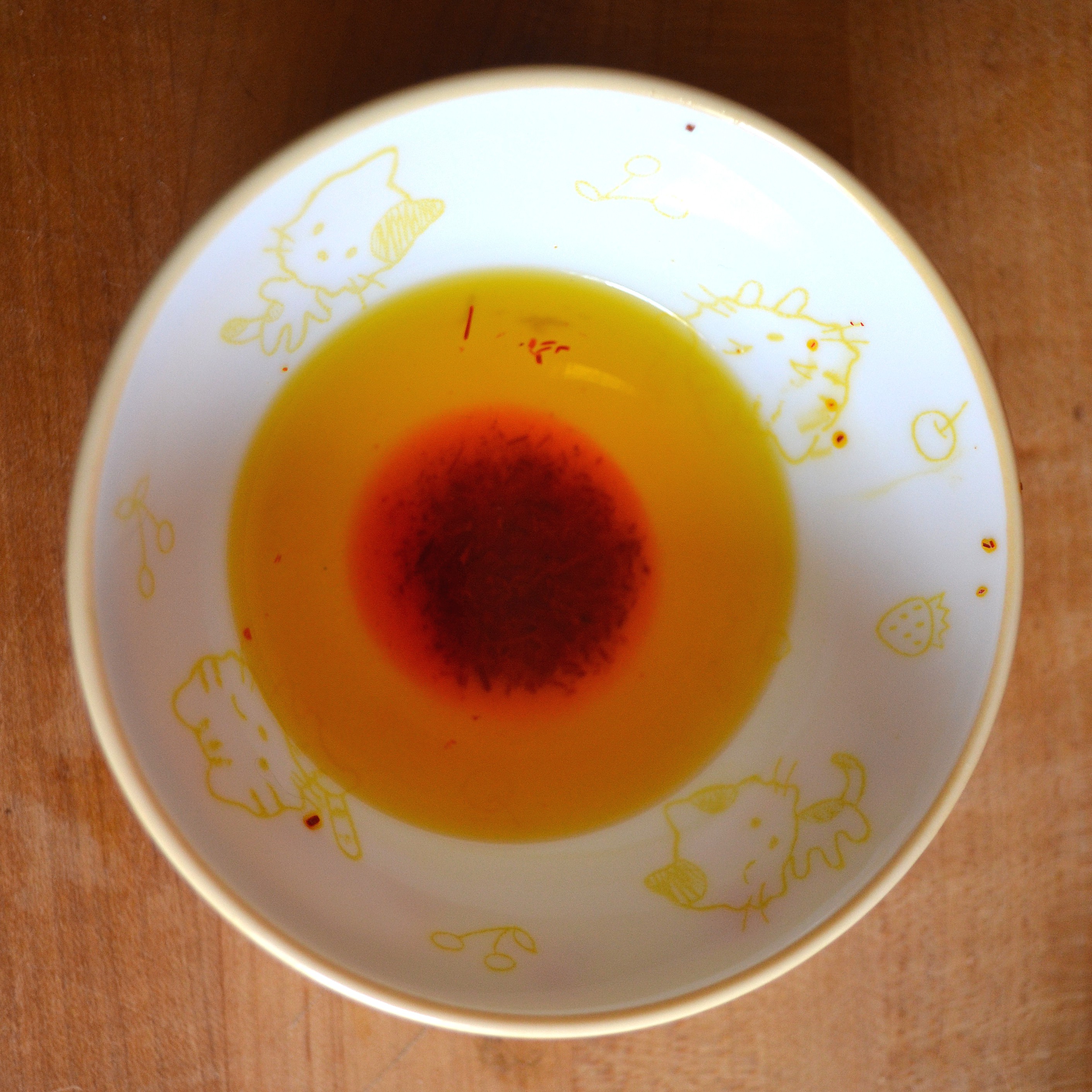 ½ teaspoon saffron, crumbled, and bloomed in a small bowl with 4 tablespoons of boiling water