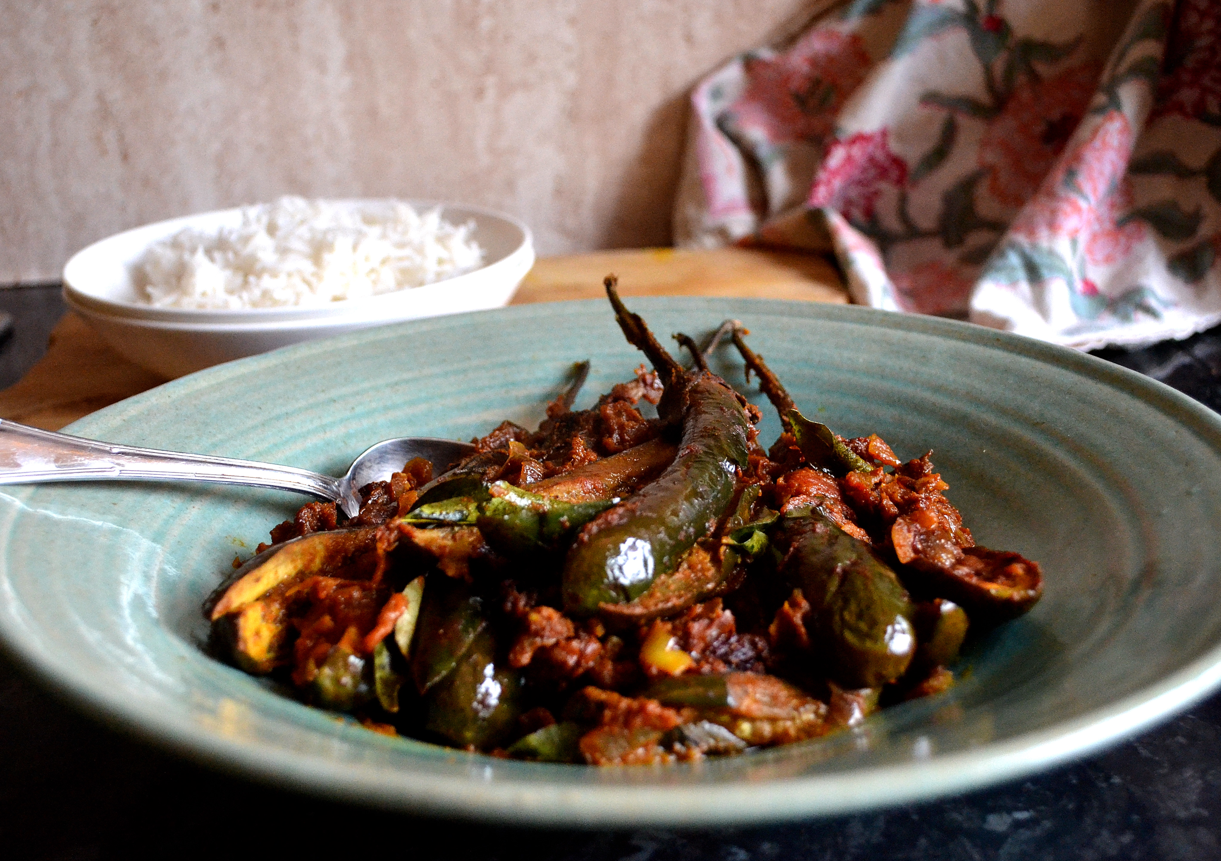 The versatile aubergine is so gloriously exotic that it should occupy some mystical plateau, like chocolate. The Mayans weren’t mixing eggplants into their sacred ceremonial brews, but they should have been. The idea is not so farfetched, either – the eggplant apparently contains more nicotine than any other plant except tobacco (although you would have to consume 20 pounds of eggplant to ingest the same amount of nicotine in a cigarette). And of course the eggplant is a member of the nightshade family (along with potatoes, tomatoes, and capsicums). For this Awadh curry I used Asian eggplants, which have thinner skin and more delicate flesh than Italian eggplants. Unlike Italian eggplants, Asian eggplants do not have to be peeled: the skin is tender and not bitter. Fully cooked, Asian eggplants have a consistency like hot custard. Hot, savory, delicious umami custard. Continue reading